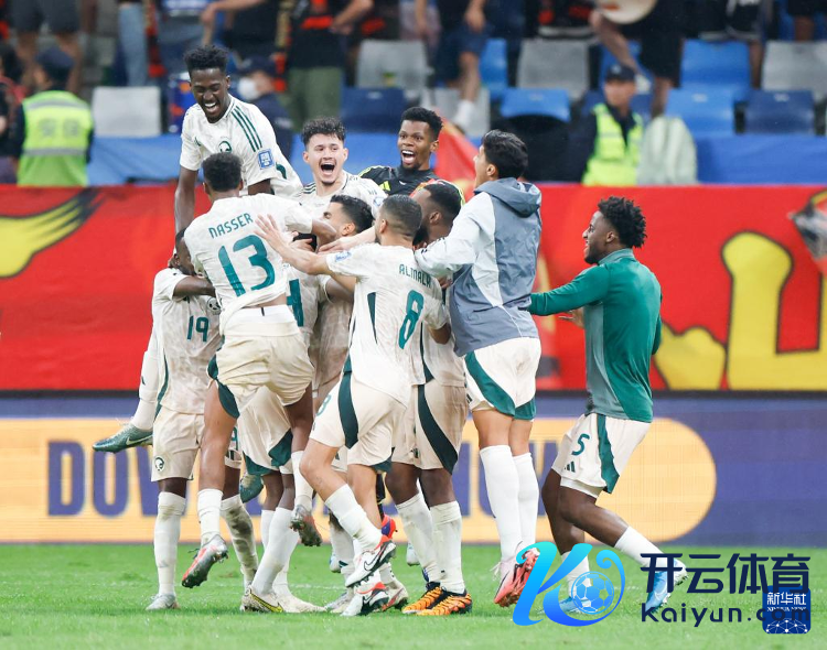 9月10日,沙特队球员在比赛中庆祝绝杀进球。新华社记者 曹灿 摄
