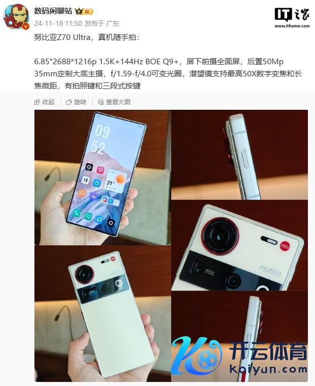 IT之家 11 月 18 日音信,努比亚 Z70 Ultra 手机将于 11 月 21 日 14:00 发布,博主@数码闲话站 当天曝光了这款新机的部分参数。