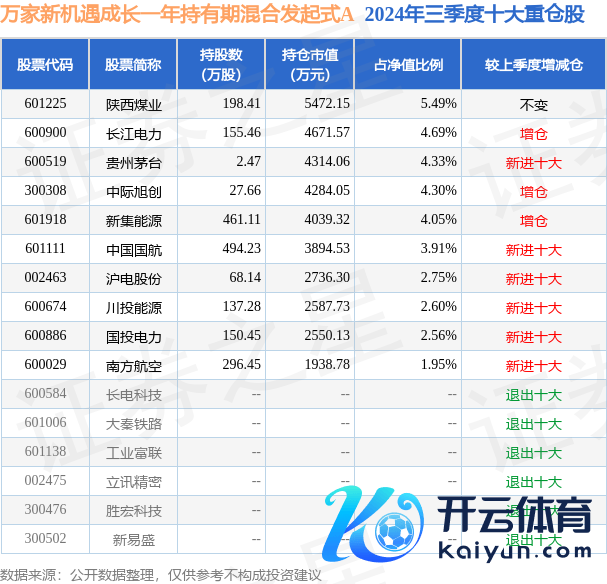 万家新机遇成长一年合手有期搀杂发起式A为搀杂型-偏股基金,阐发最新一期基金季报露出,该基金金钱建立:股票占净值比75.1%,债券占净值比8.07%,现款占净值比18.92%。基金十大重仓股如下: