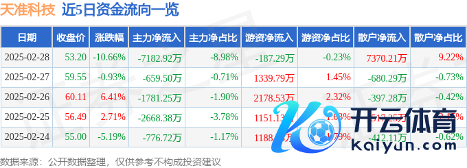 本站音问,纵容2025年2月28日收盘,天准科技(688003)报收于53.2元九游体育娱乐网,下降10.66%,换手率7.72%,成交量14.94万手,成交额8.0亿元。