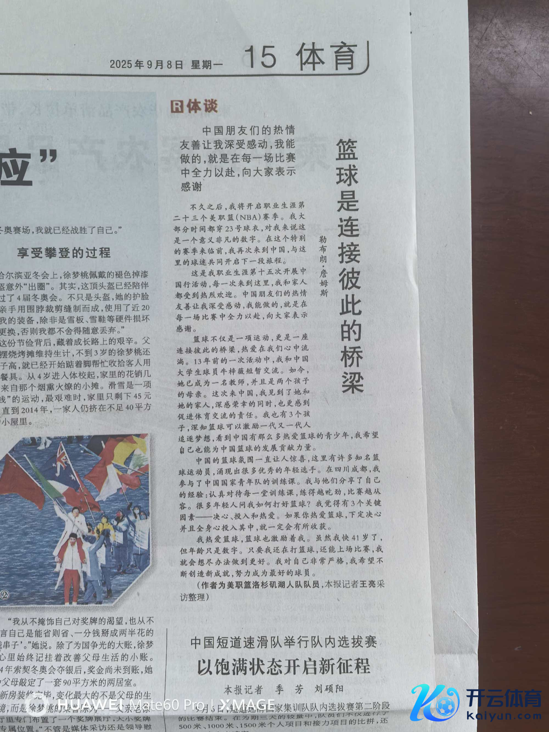 9月8日。中国最有名的泰斗媒体之一《东谈主民日报》刚刊登了近日进行中国行的历史第一东谈主詹姆斯的签字著述九游官网登录入口jiuyou官网,题目是《篮球是流畅彼此的桥梁》。《东谈主民日报》不仅在公众号上发布了詹姆斯的这篇著述,况兼他们还在纸质正刊上登出来。这个含金量,不错说是空前绝后。