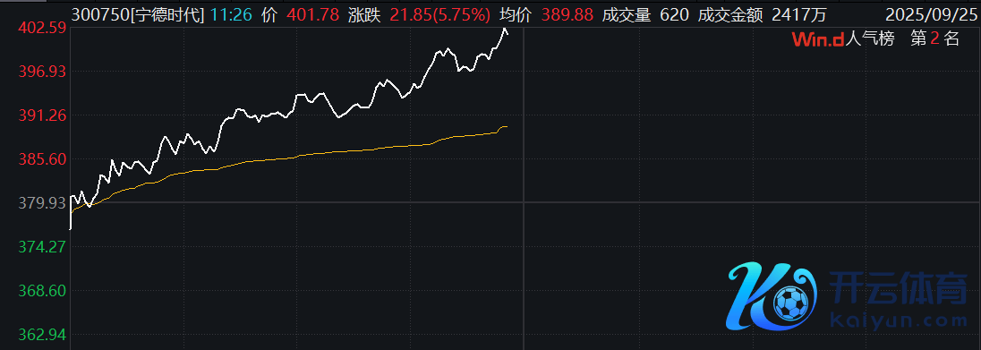 A股宁德时期股价冲破400元关隘A股宁德时期股价冲破400元关隘